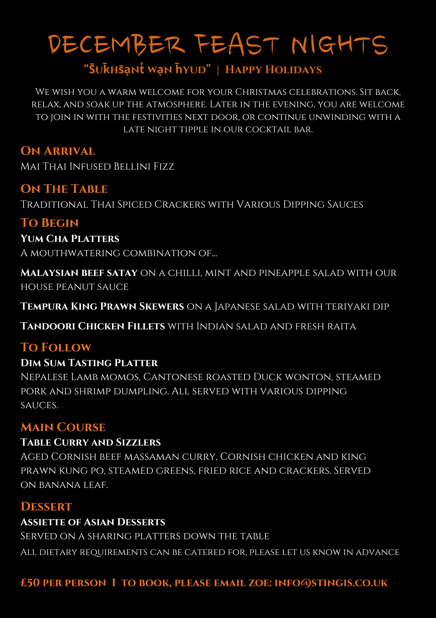 EMAIL US ON info@stingis.co.uk TO DISCUSS YOUR RESERVATION AND FOR ALL PRIVATE DINING ENQUIRIES